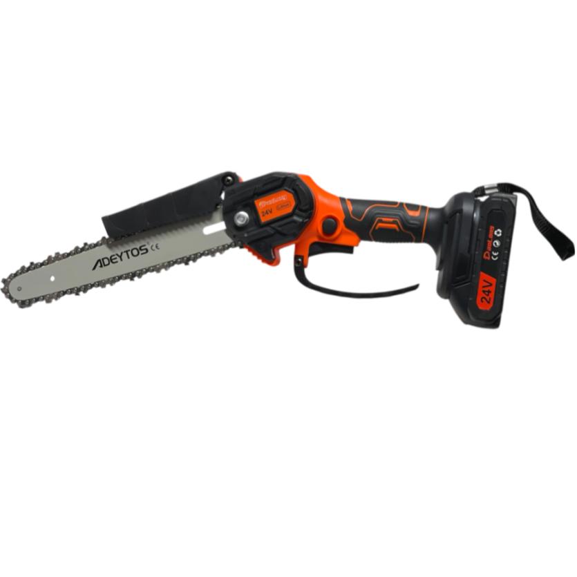O altă caracteristică excelentă a acestei mini drujbe este că este alimentată de o baterie puternică de 24 V, care asigură o durată de funcționare îndelungată și o performanță excelentă. Este perfectă pentru proiecte de tăiere mai mici și poate fi utilizată cu ușurință de către oricine, indiferent de nivelul de experiență în utilizarea drujbelor.